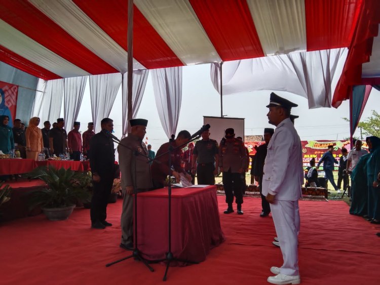 Acara pelantikan dipusatkan di Lapangan Desa Kuala Kekampung depan Kantor Kecamatan Sragi, Kami pagi (21/09/2023).