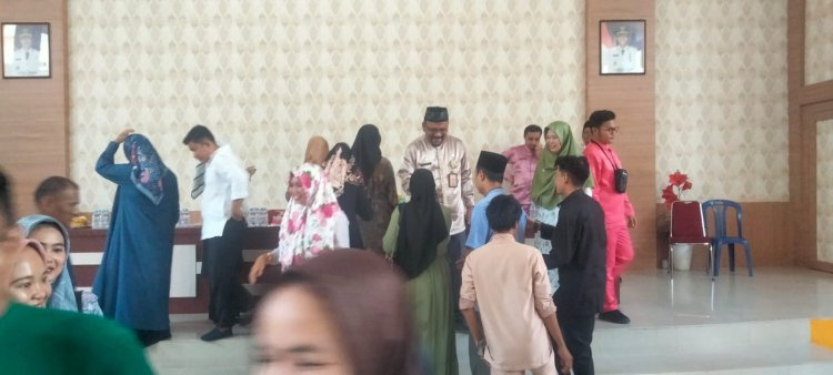 Dibanjiri ucapan selamat yang memenuhi Aula Pertemuan Kantor DLH, juga terlihat nasi tumpeng dan kado yang telah dipersiapkan Staf juga Pegawai, sebagai bentuk surprise di hari ulang tahunnya yang ke-54.