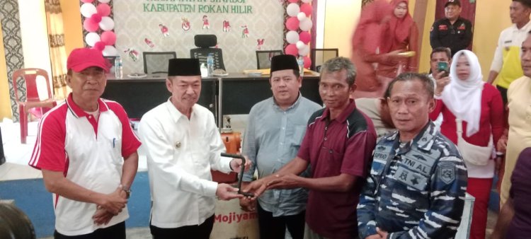 Kanalvisual.com - Rohil, Riau - Bupati Rokan Hilir (Rohil), Afrizal Sintong, S.IP., M.Si menyerahkan 20 Unit mesin boat kepada 2 (dua) kelompok Nelayan di Kelurahan Sinaboi, Kota Kecamatan Sinaboi, Jumat (16/08/2024) sore.