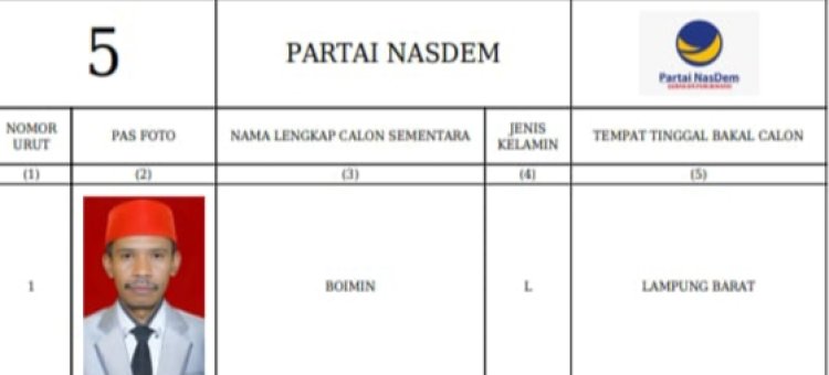 Boimin, Calon Anggota DPRD Kabupaten Lampung Barat dari Partai Nasdem