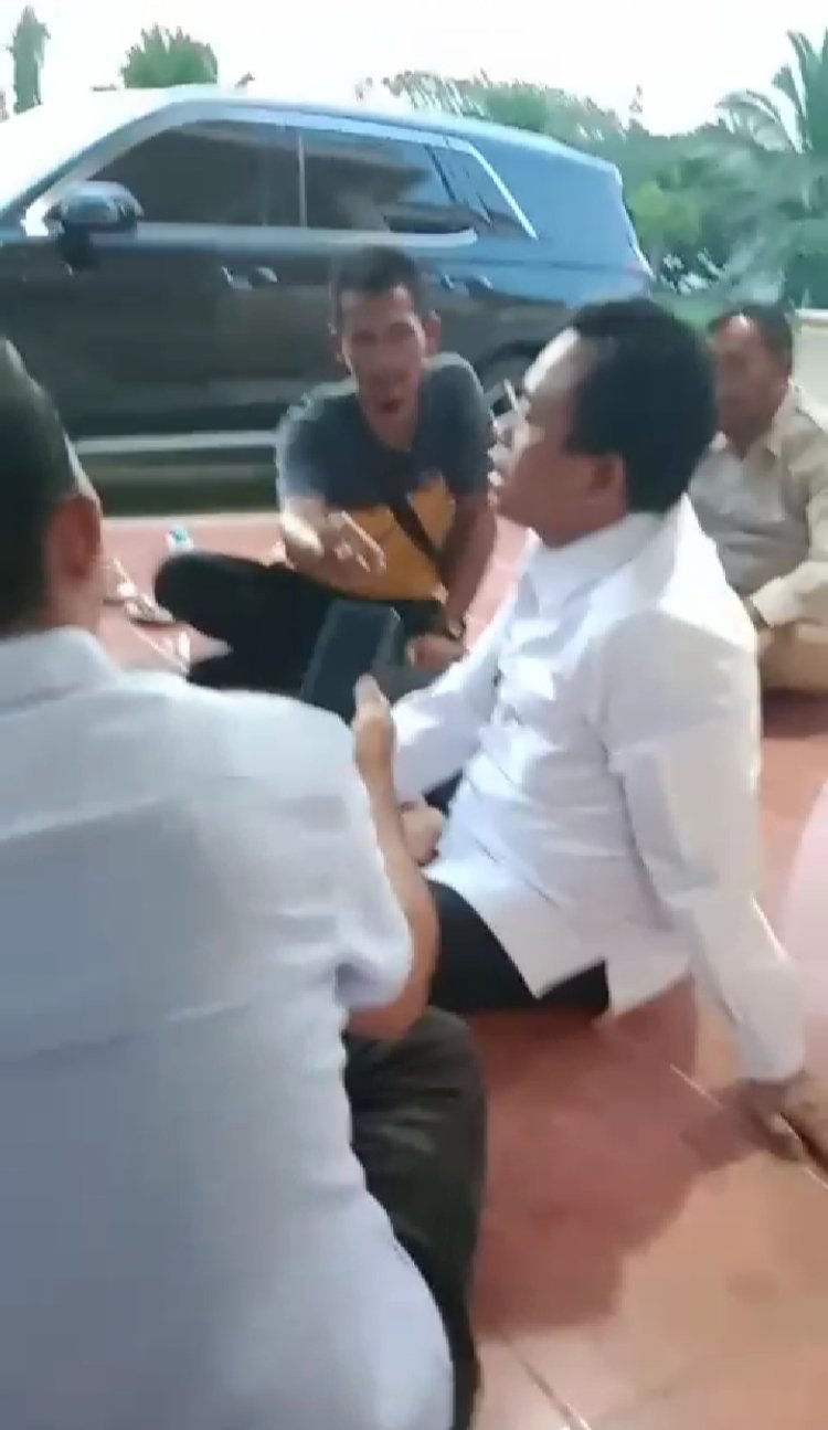 Wakil Bupati, H. Sulaiman yang saat itu mengenakan baju putih, sempa menunjuk seorang wanita, diduga merupakan istri Bupati yang datang menghampari Bupati, ditengah perbincangan mereka yang mulai memanas.