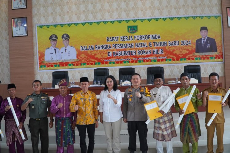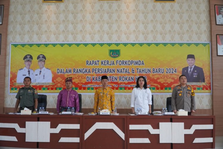 Kanalvisual.com - Rohil, Riau - Bupati Rokan Hilir (Rohil), Afrizal Sintong, M.Si pimpin langsung rapat kerja dengan Forkopimda dalam rangka persiapan Natal dan Tahun Baru (Nataru) 2024, Senin (18/12/2023) di ruang rapat Kantor Dinas Lingkungan Hidup Bagansiapiapi.