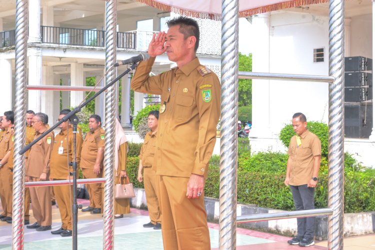 Kanalvisual.com - Rohil, Riau - Hari pertama masuk kerja setelah cuti masa kampanye hampir dua bulan lamanya, Bupati Rokan Hilir (Rohil), Afrizal Sintong langsung memimpin upacara bersama dengan Aparatur Sipil Negara (ASN) di lingkungan Pemerintah Kabupaten Rohil.
