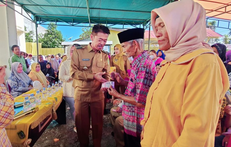 Kanalvisual.com - Rohil, Riau - Bupati Rokan Hilir (Rohil), Afrizal Sintong, S.IP, M.Si kembali menyalurkan Bantuan Langsung Tunai (BLT). Penyaluran dilakukan secara simbolis kepada Masyarakat penerima di Kantor Lurah Bagan Barat, Kecamatan Bangko, Senin (04/12/2023).