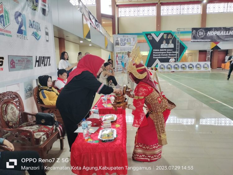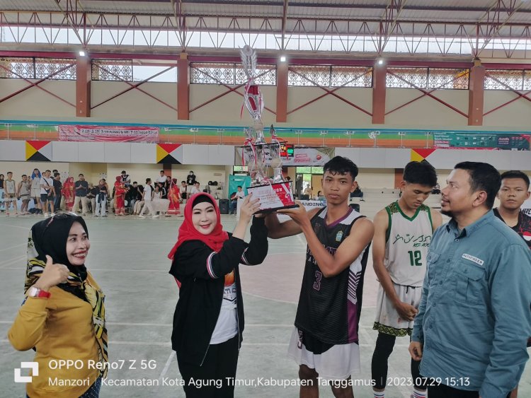 Kanalvisual.com - Tanggamus, Lampung - Bupati Tanggamus, Hj. Dewi Handajani, S.E, M.M menghadari sekaligus menutup Kompetisi Basket Ball "Bupati Cup" di Gor Ratu Pekon Kota Agung, Sabtu (29/07/2023).