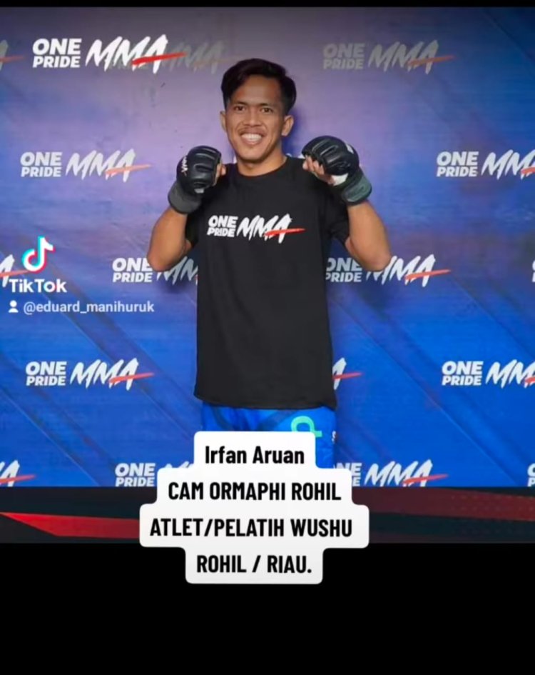 Kanalvisual.com - Rohil, Riau - Salah satu putra terbaik dari Kabupaten Rokan Hilir (Rohil), Irvan Aruan sebagai Atlet One Pride Mixed Martial Arts (MMA) akan bertanding pada semifinal kelas 56,7 KG Fly Weight di Kemayoran Jakarta Pusat, 8 Juli 2023 mendatang.
