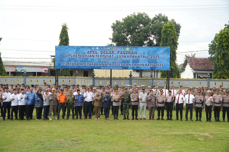 Kanalvisual.com - Lampung Timur - Polres Lampung Timur menggelar Apel Gelar Pasukan Operasi Kepolisian Terpusat Lilin Krakatau 2025 dalam rangka pengamanan perayaan Natal 2025 dan Tahun Baru 2026. Kegiatan tersebut berlangsung di Lapangan Satya Haprabu, Mapolres Lampung Timur, Jumat (19/12/2025).