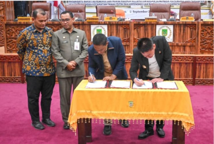 Kanalvisual.com - Rohil, Riau - Melalui Rapat Paripurna Laporan Badan Anggaran DPRD Rokan Hilir terkait perubahan KUA dan PPAS APBD Tahun 2024, Pemkab Rohil bersama DPRD menandatangani Nota Kesepakatan Perubahan Kebijakan Umum Anggaran (KUA) dan Prioritas Plafon Anggaran Sementara (PPAS) Kabupaten Rokan Hilir tahun 2024.