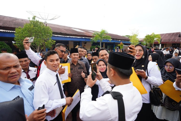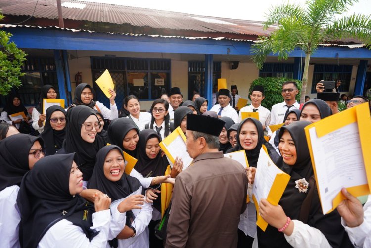 Kanalvisual.com - Rohil, Riau - Sebanyak 588 Surat Keputusan (SK) Pegawai Pemerintah dengan Perjanjian Kerja (PPPK) formasi Guru di serahkan Gubernur Riau, Syamsuar kepada Tenaga Pendidik SMA/SMK/SLB se-Kabupaten Rokan Hilir (Rohil). Penyerahan ini dilaksanakan di SMAN 1 Bangko, Kabupaten Rohil, Senin (21/08/2023).