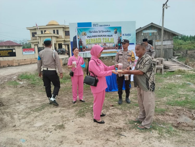Kanalvisual.com - Rohil, Riau - Polsek Sinaboi Polres Rohil bersama Bhayangkari Ranting Polsek Sinaboi, melakukan kegiatan berbagi takjil kepada masyarakat di depan Mapolsek Sinaboi, Jl. Poros Dumai Sinaboi Kepenghuluan Sei-Bakau, Kecamatan Sinaboi, Kabupaten Rokan Hilir, pada Kamis (20/03/2025) pukul 17.00 WIB.