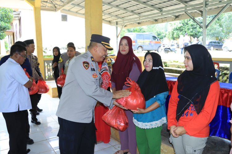 Kali ini Kapolres, AKBP Kurniawan didampingi Pejabat Utama dan Kapolsek Abung Barat, AKP Tri Handoko memberikan puluhah Paket Sembako kepada Masyarakat Desa Pukurun.