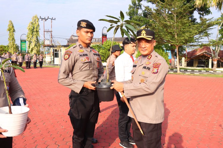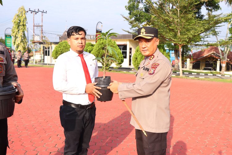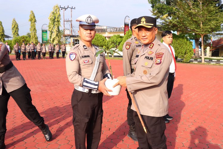 Kapolres Rohil Beri Hadiah Bibit Pohon ke Personil Berulang Tahun, Peduli Personel dan Lingkungan