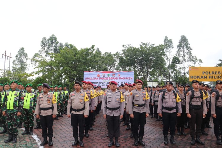 Kanalvisual.com - Rohil, Riau - Bertempat di Lapangan Apel Polres Rokan Hilir, Jl. Lintas Riau - Sumut, Kelurahan Banjar XII, Kecamatan Tanah Putih, Kabupaten Rokan Hilir, telah dilaksanakan upacara pergeseran pasukan dalam rangka pengamanan TPS Pilkada Serentak Tahun 2024 Polres Rokan Hilir, Senin (25/11/2024) pukul 08.00 WIB.