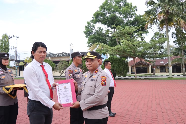 Kanalvisual.com - Rohil, Riau - Kapolsek Pujud Polres Rohil, AKP Boy Setiawan, S.A.P., M.Si, bersama 7 orang Personel menerima penghargaan sebagai Personel Polri terbaik di Polres Rohil, ini sesuai prestasi yang telah dilakukannya.