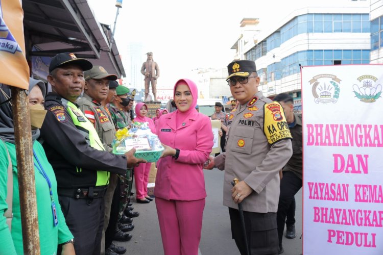 Ketua Bhayangkari Daerah Lampung Beri Bingkisan ke Personil Pam Operasi Ketupat Krakatu 2023