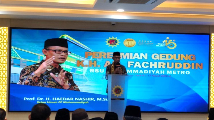 Prof. Dr. Haedar Nashir, M.Si atau yang akrab disapa Buya Haedar sangat bersyukur dapat berjumpa dengan Walikota, Wakil dan Jajarannya untuk meresmikan Gedung K.H.AR Fachrudin Rumah Sakit Umum (RSU) Muhammadiyah Metro.