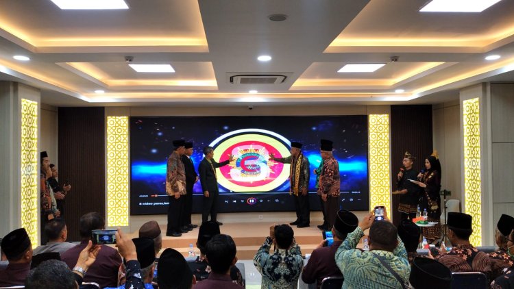 KanalVisual - Kota Metro, Lampung - Ketua Umum Pimpinan Pusat (PP) Muhammadiyah Prof. Dr. Haedar Nashir, M.Si dan Walikota Metro, Wahdi Meresmikan Gedung K.H. AR Fachruddin Rumah Sakit Umum (RSU) Muhammadiyah di Aula Gedung lantai 2, Jum'at (17/03/2023).