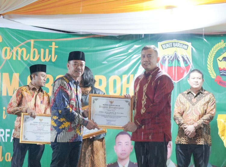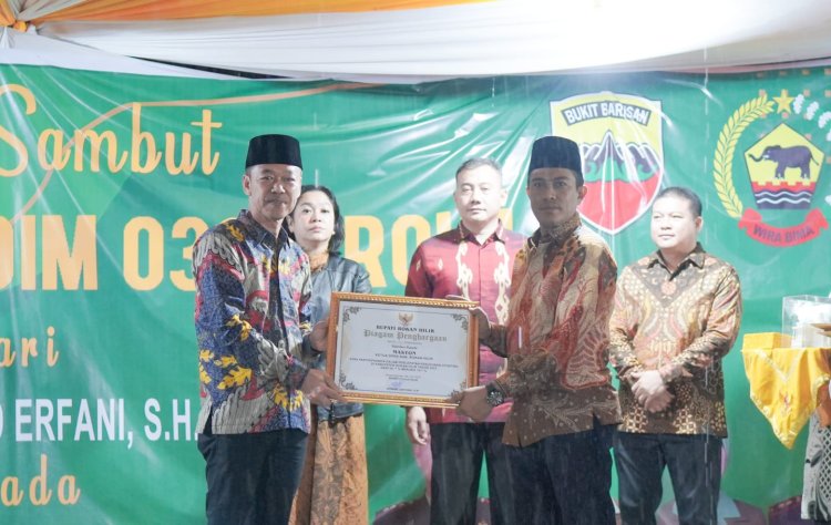Bupati juga memberikan piagam penghargaan kepada Dandim 0321 Rohil, Letkol Inf M Erfani atas partisipasi nya dalam membangun Kabupaten Rohil. (Jekson).