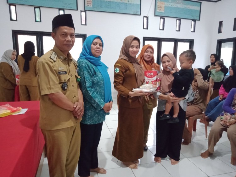 Hadir dalam acara, Pj. Peratin Pekon Tugu Mulya, Distomi, SP, Camat Kebun Tebu, Ernawati, S.E, Bidan Desa, Siti Julaeha, Str, Keb, dan para Ibu-ibu.