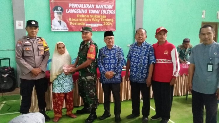 Pendistribusian bantuan tersebut berlangsung di balai pekon setempat, Jum'at (17/05/2024) hadir dalam acara tersebut, Pj Peratin Suka Raja,Warno, S.E, Uspika Kecamatan Way Tenong, Bhabinsa, Bhabinsa, Pendamping Desa (PD) Pendamping Lokal Desa (PLD) jajaran pemerintah pekon, Ketua dan anggota LHP dan KPM.