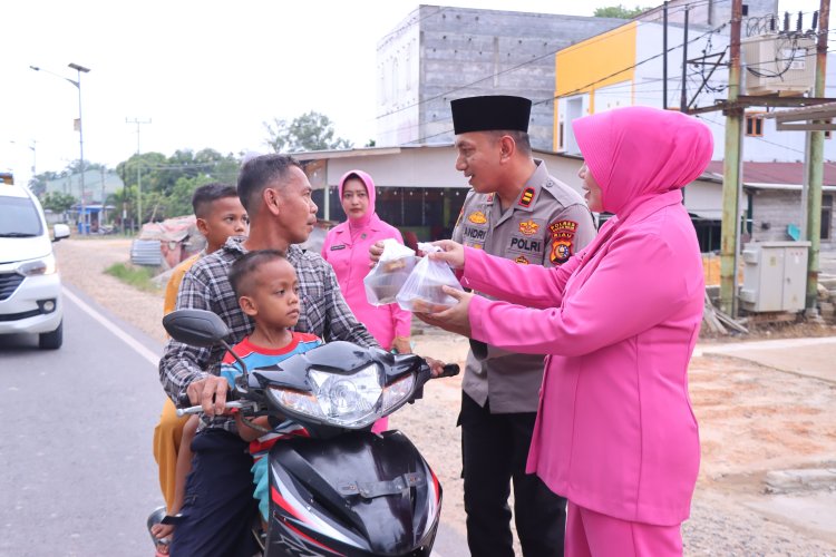 Personil Polsek Rimba Melintang dan Bhayangkari Bagi Takjil