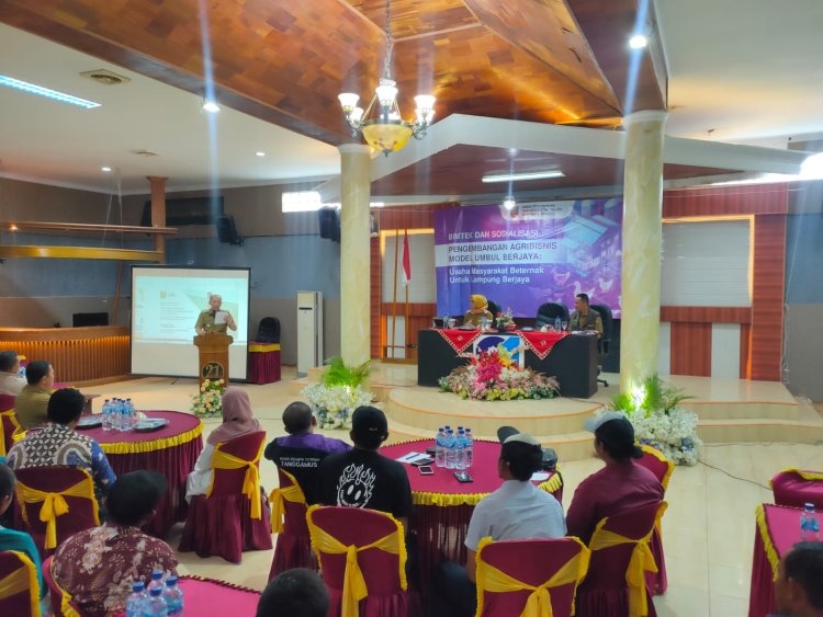 Kanalvisual. com - Tanggamus, Lampung - Penjabat (Pj) Bupati Tanggamus, Ir. Mulyadi Irsan, MT, menghadiri sekaligus Membuka Bimtek dan Sosialisasi Pengembangan Agribisnis Model Umbul Berjaya "Usaha Masyarakat Beternak untuk Lampung Berjaya" diadakan di Aula Hotel 21 Kecamatan Gisting, Senin (04/12/2023).