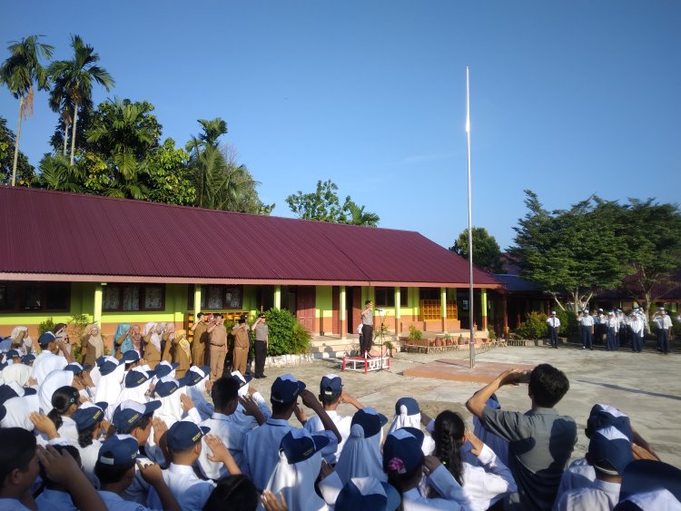 Kompol Deni Afrial menyampaikan enam poin amanat yang padat dan langsung menyentuh kehidupan sehari-hari para siswa. Pertama, ia mengingatkan bahwa tugas utama seorang pelajar hanya satu — belajar dengan sungguh-sungguh sebagai bekal meraih masa depan dan menggapai cita-cita setinggi langit. Kedua, ia menegaskan larangan bagi siswa SMP untuk mengendarai sepeda motor sendiri, mengingat tingginya angka kecelakaan lalu lintas di Jalan Lintas Timur yang selain padat juga diwarnai banyaknya jalan rusak. Ketiga, ia mengajak seluruh siswa untuk lantang berkata tidak pada narkoba. "Kalau sekolah ini tidak ada narkoba, ke depannya harus tetap tidak ada. Narkoba harus nol di sekolah ini," tegasnya.