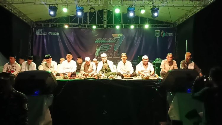 Kanalvisual.com - Metro, Lampung - Peringati Hari Ulang Tahun ke-7, Serikat Media Siber Indonesia (SMSI) Kota Metro menggelar Solawat yang dihadiri langsung oleh Habib Fahmi Husein Al Haddad di Lapangan Rejomulyo, Metro Selatan.