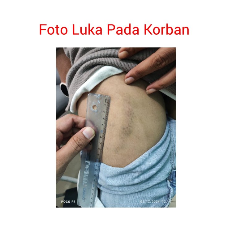Atas kejadiaan tersebut, Korban mengalami luka tampak memar kebiruan di paha kanan dengan panjang 8 cm, lebar 1,5 cm (hasil VER).