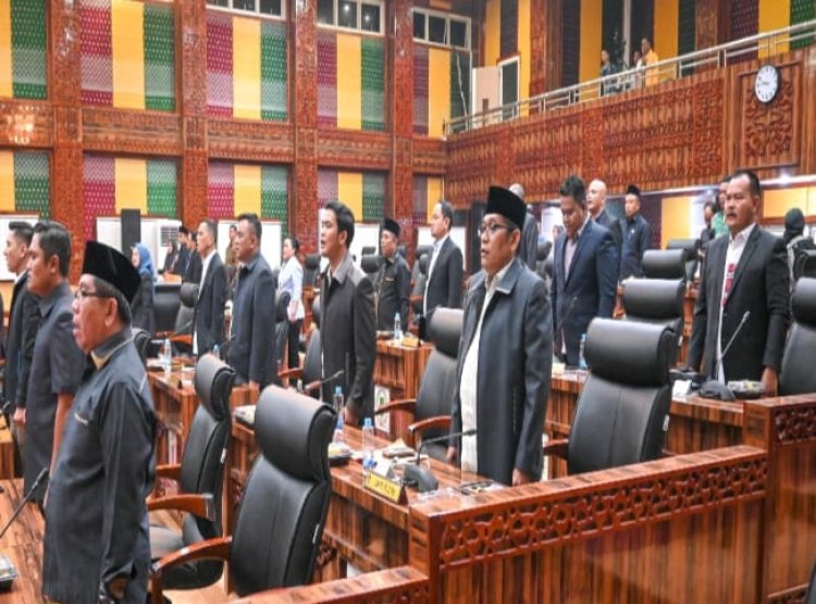 "Hari ini Sabtu tanggal 14 September tahun 2024 tepat pukul 21.50 WIB, rapat paripurna ke-16 masa sidang ketiga tahun sidang 2024 dengan agenda pokok menyampaikan Rancangan Peraturan Daerah tentang Anggaran Pendapatan Belanja Daerah Tahun Anggaran 2024 kami buka dan dinyatakan terbuka untuk umum," kata Maston.