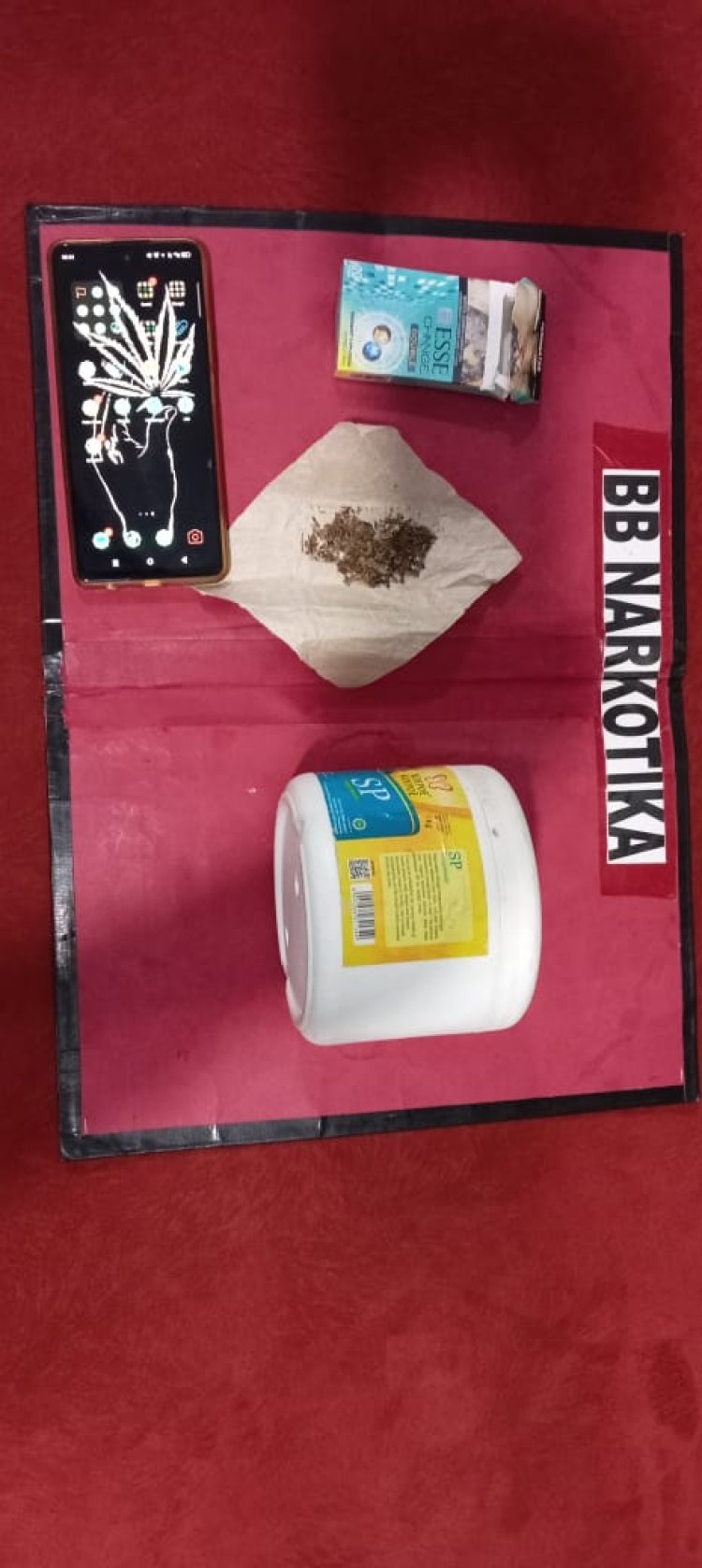 Dari hasil penangkapan terhadap kedua pelaku, polisi berhasil menyita sejumlah barang bukti antara lain 1 bungkus kotak rokok kosong berisi selembar kertas yang berisi biji, batang, dan daun kering diduga narkotika golongan I jenis ganja, 1 buah toples warna putih berisi biji kering yang juga diduga ganja, 2 unit handphone android, 1 bungkus plastik klip bening ukuran sedang berisi 8 bungkus kecil klip bening berisi kristal putih diduga sabu-sabu, 1 perangkat alat hisap sabu (bong) yang terbuat dari botol plastik, serta 1 buah casing polos HP warna hitam.