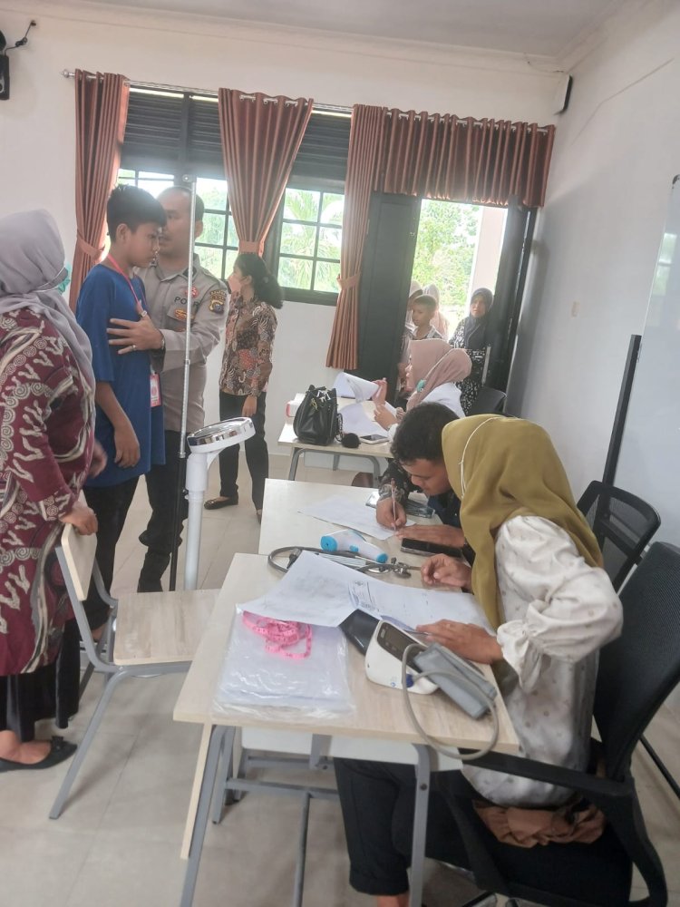 Kanalvisual.com – Rokan Hilir – Riau – Seksi Kedokteran dan Kesehatan (Sidokkes) Polres Rokan Hilir melaksanakan pemeriksaan kesehatan bagi siswa-siswi Sekolah Rakyat Terintegrasi Kabupaten Rokan Hilir Tahun Ajaran 2025 sebelum memasuki dan tinggal di asrama.