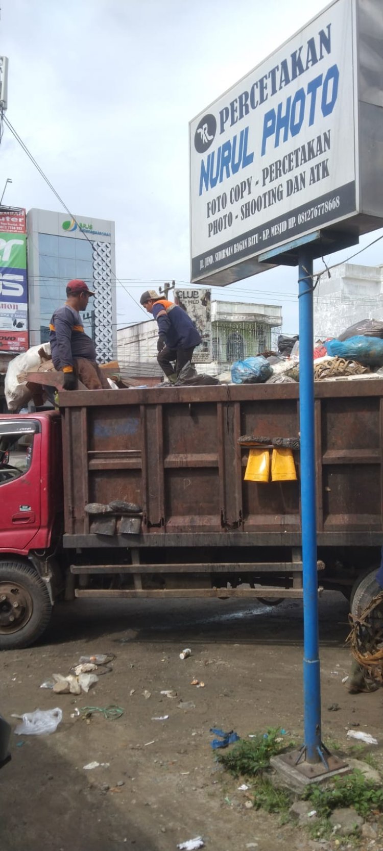 Kanalvisual.com - Rohil, Riau - Sampah yang sempat menumpuk di depan Pajak Lama Bagan Batu, hari ini telah selesai diangkut.