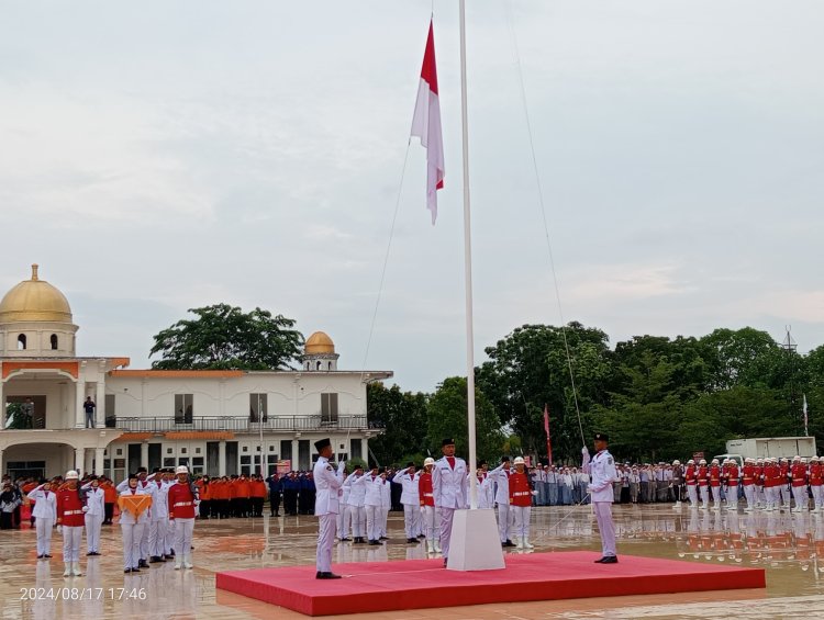 Kanalvisual.com - Rohil, Riau - Tepat pada pukul 17.00 WIB, Wakil Bupati Rokan Hilir (Rohil)batas nama Pemerintah Kabupaten Rokan Hilir bertindak sebagai Inspektur Upacara pada pelaksanaan upacara penurunan bendera dalam rangka memperingati Hari Ulang Tahun (HUT) ke-79.