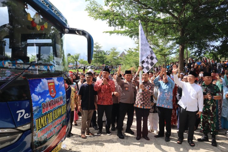 Kanalvisual.com - Lampung Barat - Polres Lampung Barat, Polda Lampung melaksanakan pengamanan pemberangkatan Jama'ah Calon Haji Kabupaten Lampung Barat Kloter ke dua tahun 2023 bertempat di Islamic Center Kawasan Sekuting Terpadu, Pekon Watas, Kecamatan Balik bukit, Kabupaten Lampung Barat, Jum'at (09/06/2023).